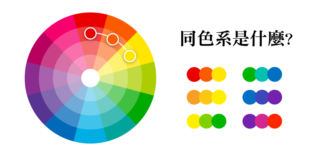 色系類型是藉由十二色相環中的色彩,進一步分為暖、冷、中性色,每個色系由一個或多個色相組成,了解色系分類可以幫助奠定網頁設計配色基礎,讓色彩規劃流程可以更順暢的執行!